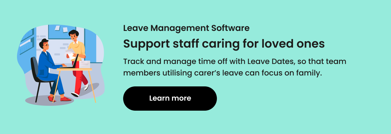 Make sure to clearly outline employee rights to carer's leave in the HR handbooks. Use absence management software, such as Leave Dates, to support carer's leave requests.