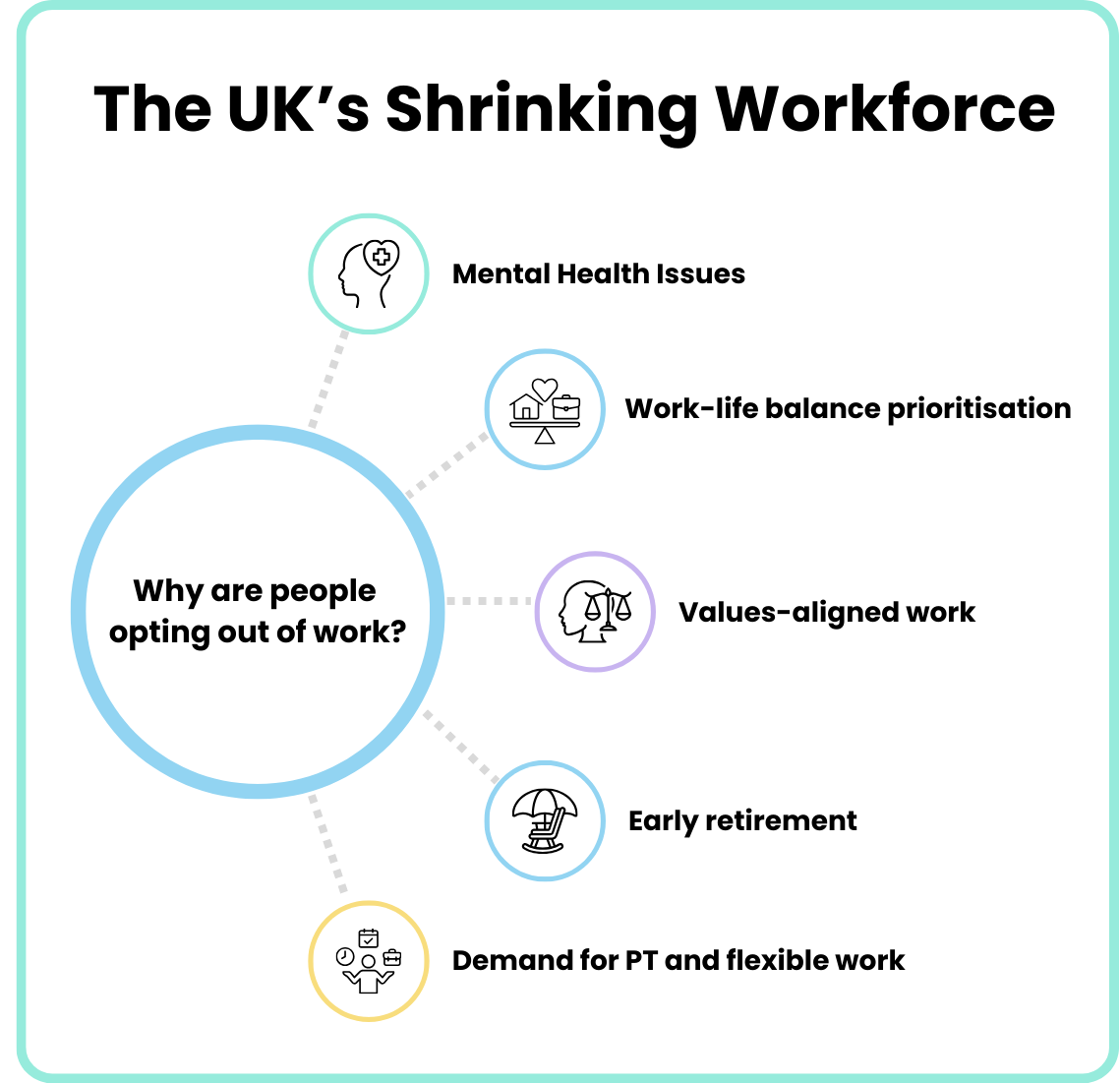 In the post-COVID era, the UK has seen workplace participation fall by 800,000 people. Ill health, stress, childcare and a desire for better work-life balance and conditions have contributed to this.